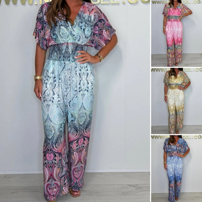 STIL UÈOR ÈI CONFORTABILÂ - AceastÄ salopetÄ combinÄ un top lejer, cu mĂąneci scurte, cu pantaloni cu picioare late, pentru o siluetÄ uÈoarÄ Èi mÄgulitoare, perfectÄ pentru ieeÈÄ fi la coziouÄ toat, de Ăźn oraÈ.