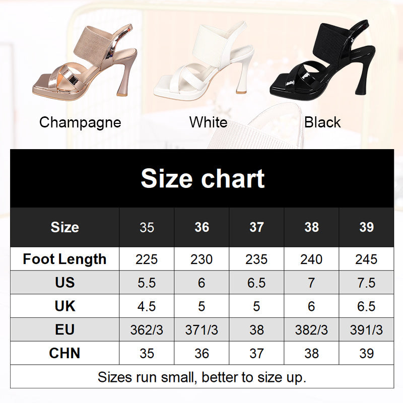 🙋‍♀️Szögletes orrú magassarkú szandál elasztikus bokapánttal👡