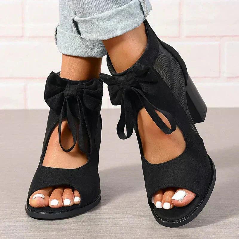 ✨ Női magas sarkú masnis, nyitott orrú szandál