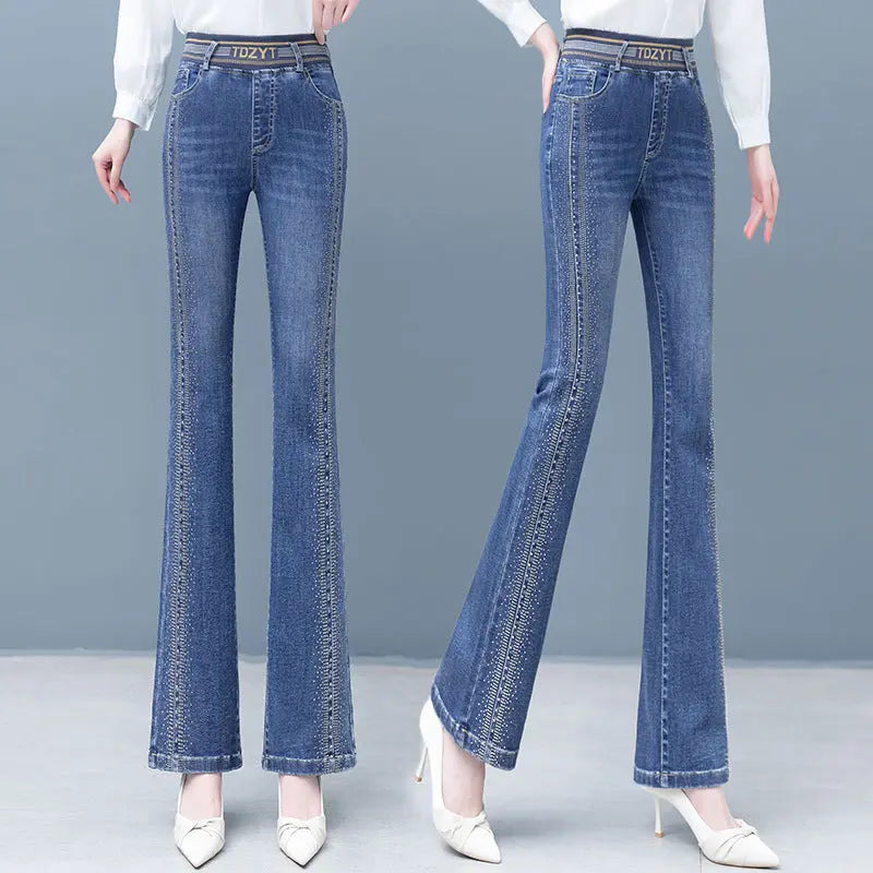 A stílus és a kényelem a női Bell Bottom magas derekú farmernadrágunkkal, rugalmas béléssel. Légáteresztő, könnyű és vékony anyagból készült farmernadrág rugalmas és tökéletesen illeszkedik az alakhoz.