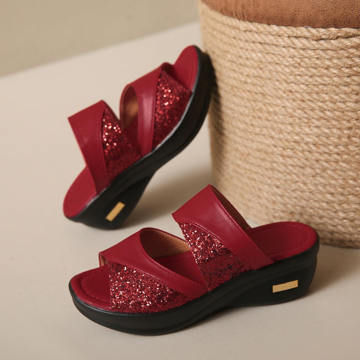 A nyári csillogó ékplatformos kényelmes női szandálok speciális tervezésűek, három íves támasztékkal és puha talppal, hogy kényelmet, egészséges biztonságot és kiváló stílust biztosítsanak lábának!