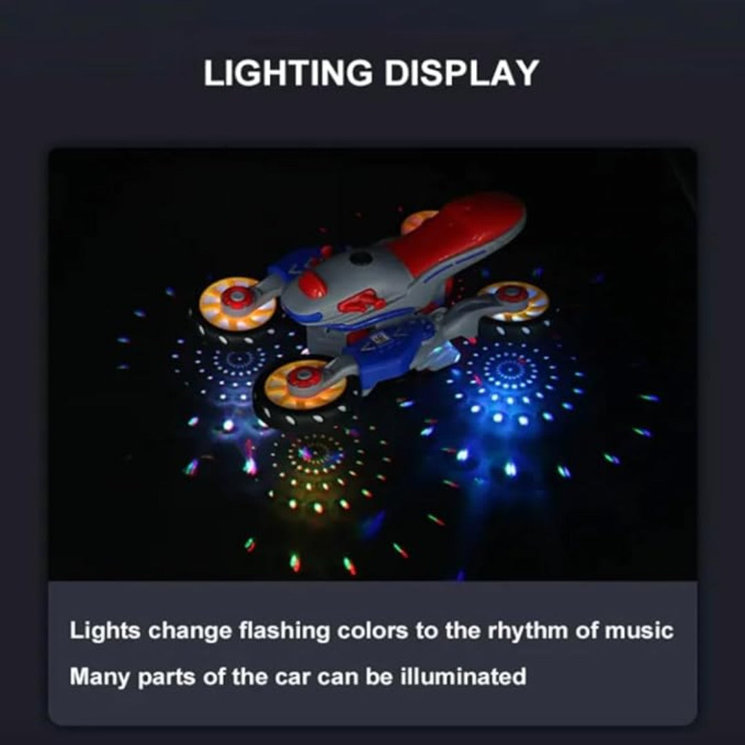【360 fokos átalakító akció】: Nézze meg ámulattal, ahogy ez a játékmotorkerékpár átalakul, és lélegzetelállító 360 fokos pörgetést hajt végre. A dinamikus kialakítás extra izgalmat ad a játéknak, leköti a gyerekeket és szórakoztatja őket.