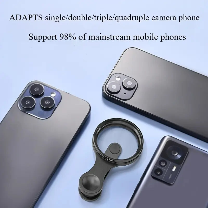 Emelje magasabb szintre mobilfotózási képességeit a telefonjához készült prémium 52 mm-es CPL objektívünkkel. Rögzítsen kristálytiszta, élénk képeket, amelyek a professzionális fotókkal vetekednek, és minden fotót lenyűgöző remekművé varázsolnak.