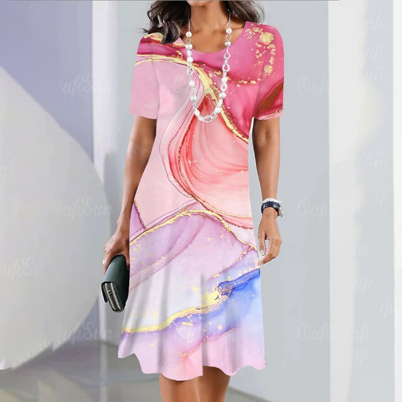 🌹Rózsa nyaklánc ingyen🌸Női alkalmi sokoldalú nyomtatott ruha