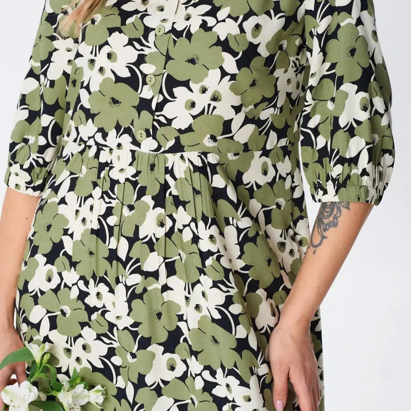STĂLUSOS VIRĂGMINTA: Ez a ruha gyönyörƱ zöld virĂĄgmintĂĄval rendelkezik, amely a termĂ©szet eleganciĂĄjĂĄt viszi ruhatĂĄradba. A bonyolult minta Ă©lĂ©nk, mĂ©gis visszafogott, Ăgy tökĂ©letes bĂĄrmilyen laza kirĂĄndulĂĄshoz vagy tĂĄrsasĂĄgi esemĂ©nyhez. SokoldalĂș darab, amely könnyedĂ©n kombinĂĄlhatĂł szandĂĄllal, sportcipĆvel vagy magassarkĂșval, Ăgy tavaszi Ă©s nyĂĄri viseletkĂ©nt is nĂ©lkĂŒlözhetetlen darab.