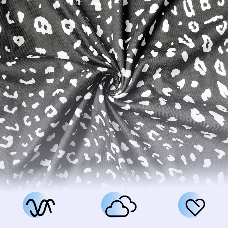A fekete felső és a fehér virágmintás alsó párosítása feltűnő kontrasztot alkot, tökéletes mindennapi vagy félig formális alkalmakra.