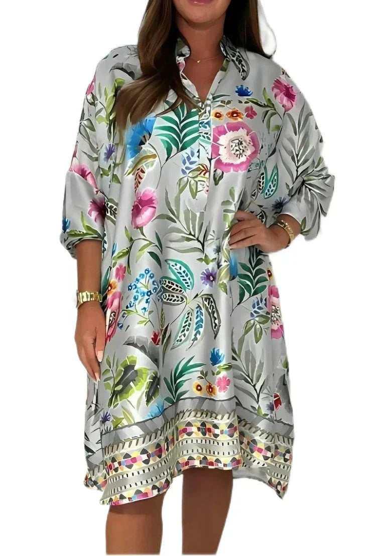 🌺Laza virágmintás ruha gombos V-nyakkal