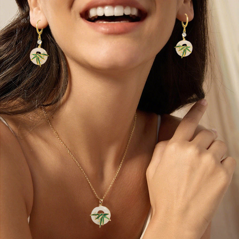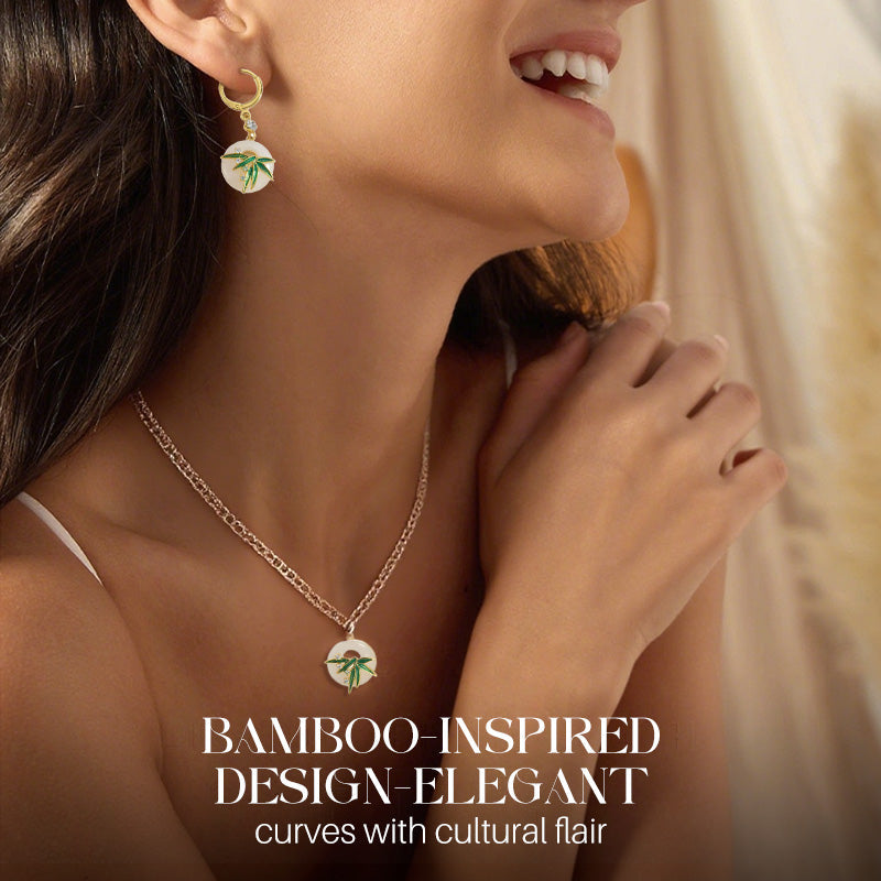 Modern, orientális stílusú bambusz fülbevalók és nyaklánc