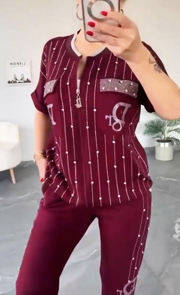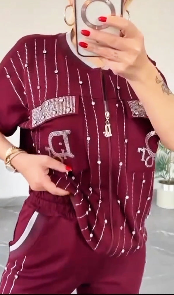đKĂ©trĂ©szes szett cipzĂĄrral Ă©s kristĂĄlyokkal