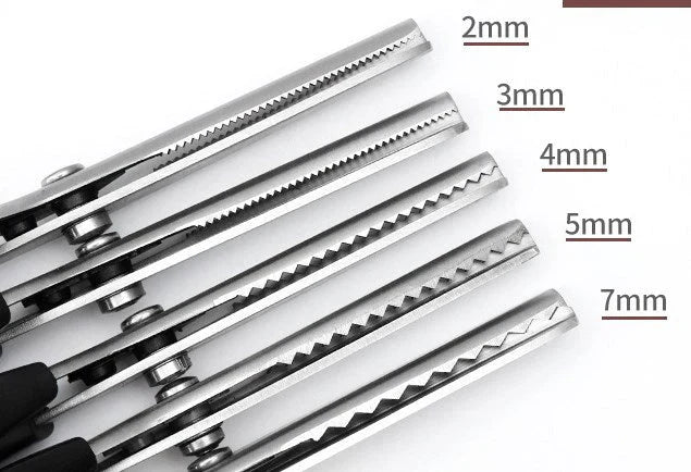 - SOKOLDALÚ PÉCSÉT VÁGÓK: Az éles pengék fogazottak, és vágáskor cikk-cakk mintázatot hagynak maguk után. A fogazott mintázat csökkentheti a szövet széleinél a szálak kopását, megakadályozva az elakadást és minimalizálva a károsodást.
