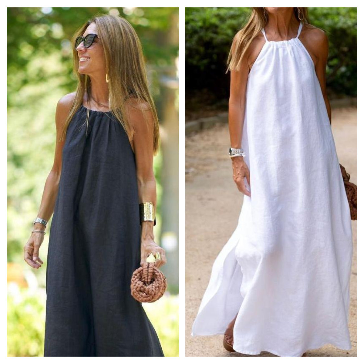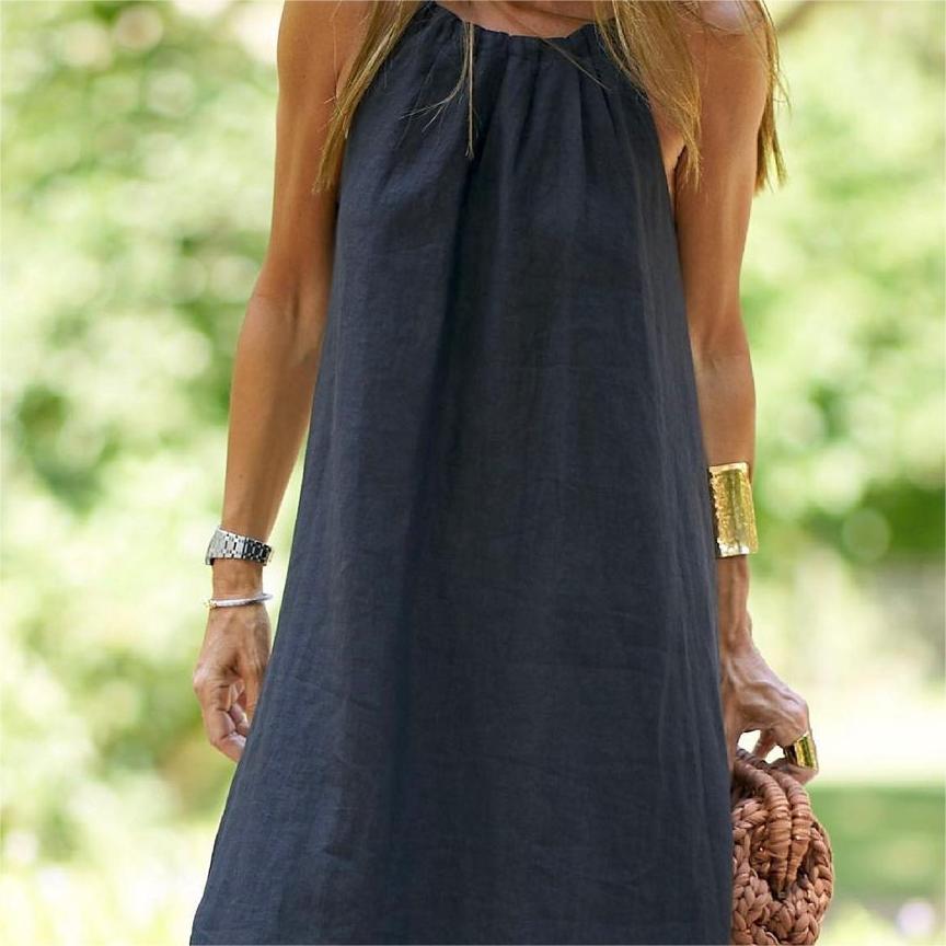 💃Egyszínű, bő, légáteresztő pántos ruha💛