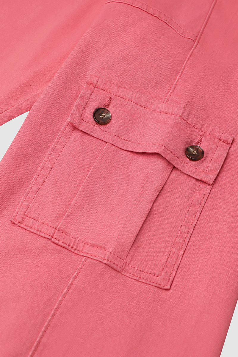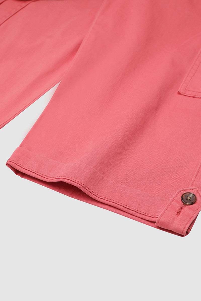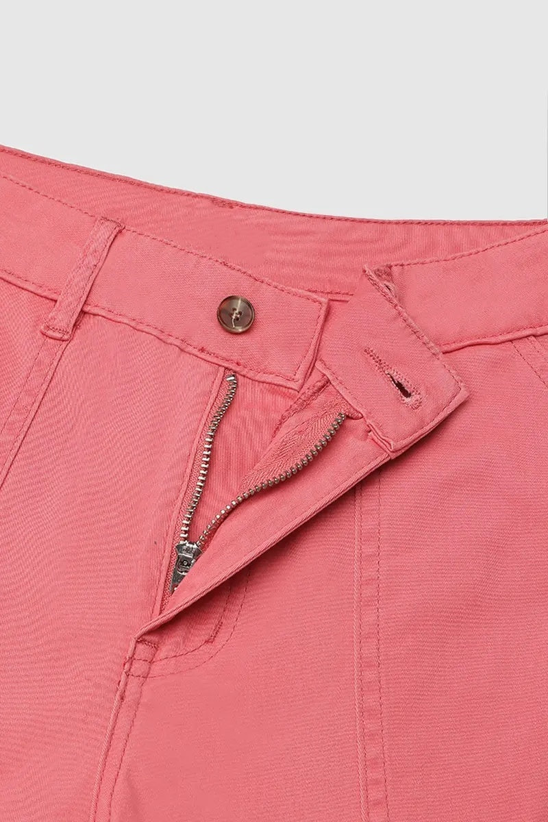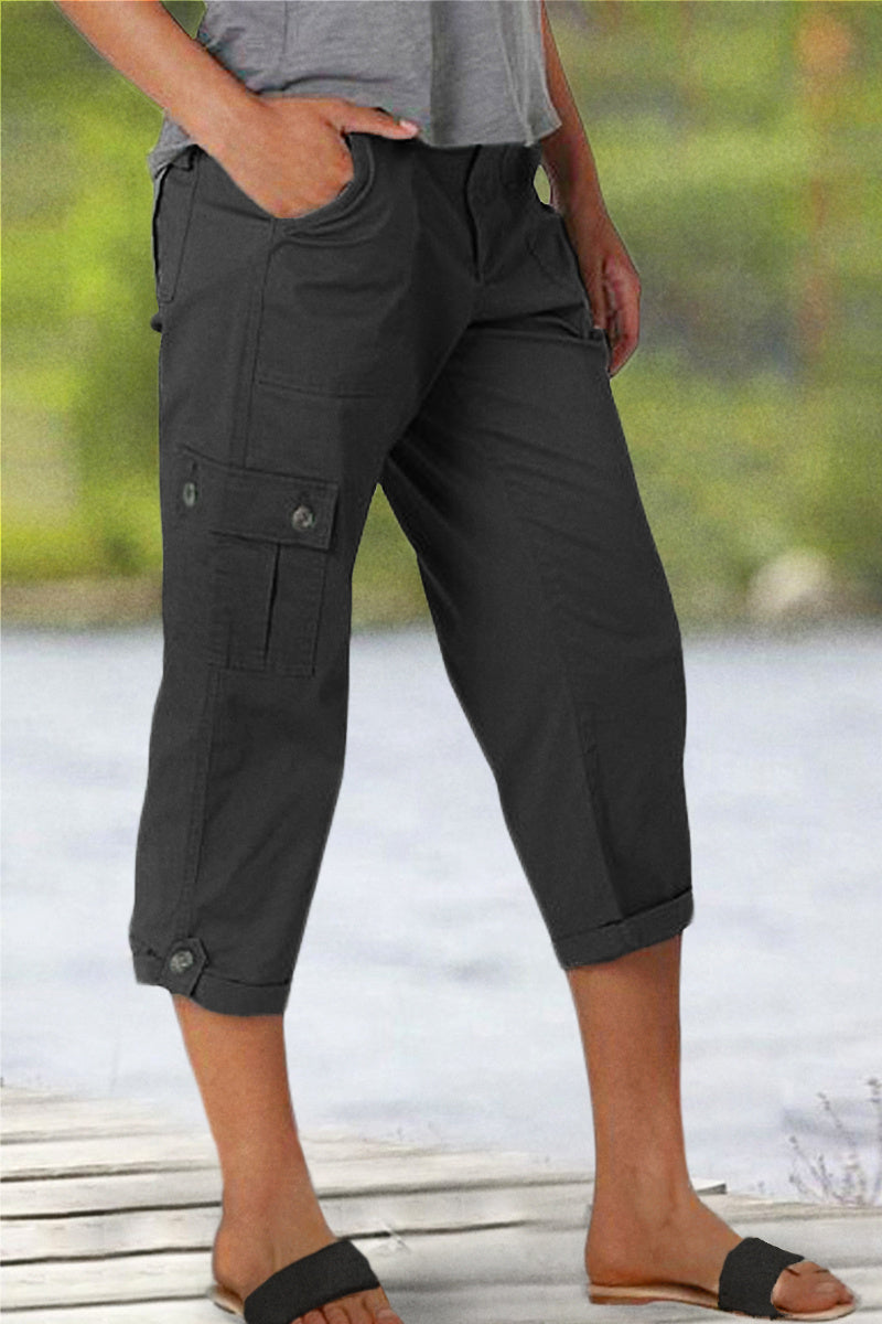Capri nadrág zsebekkel és középmagas derékkal, alján hajtásokkal és több zsebbel.