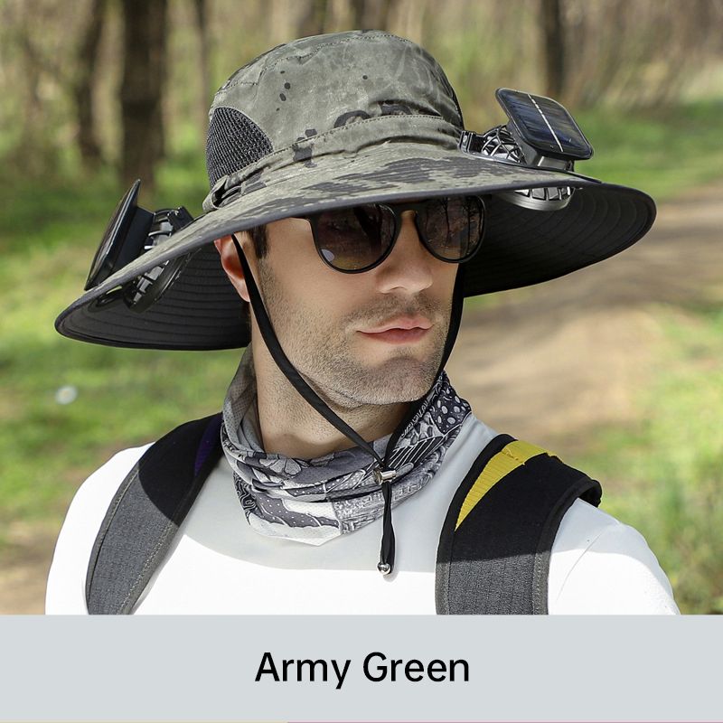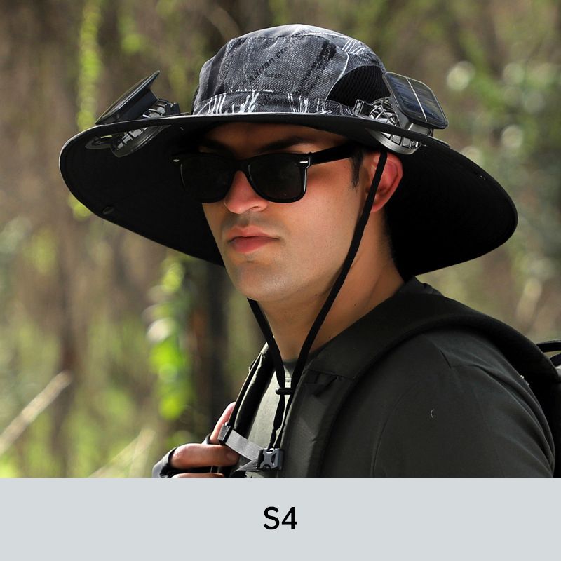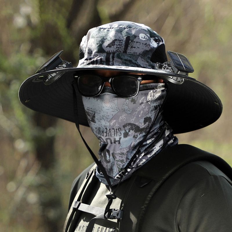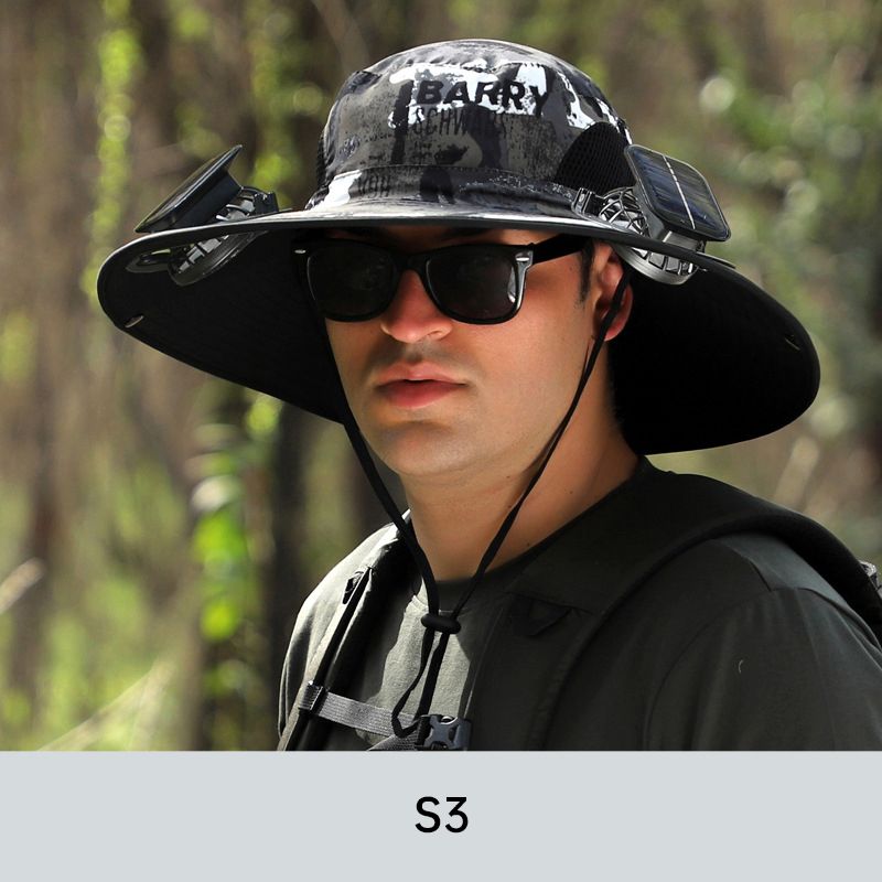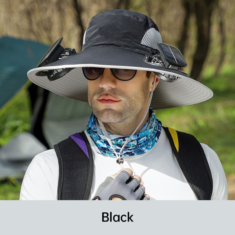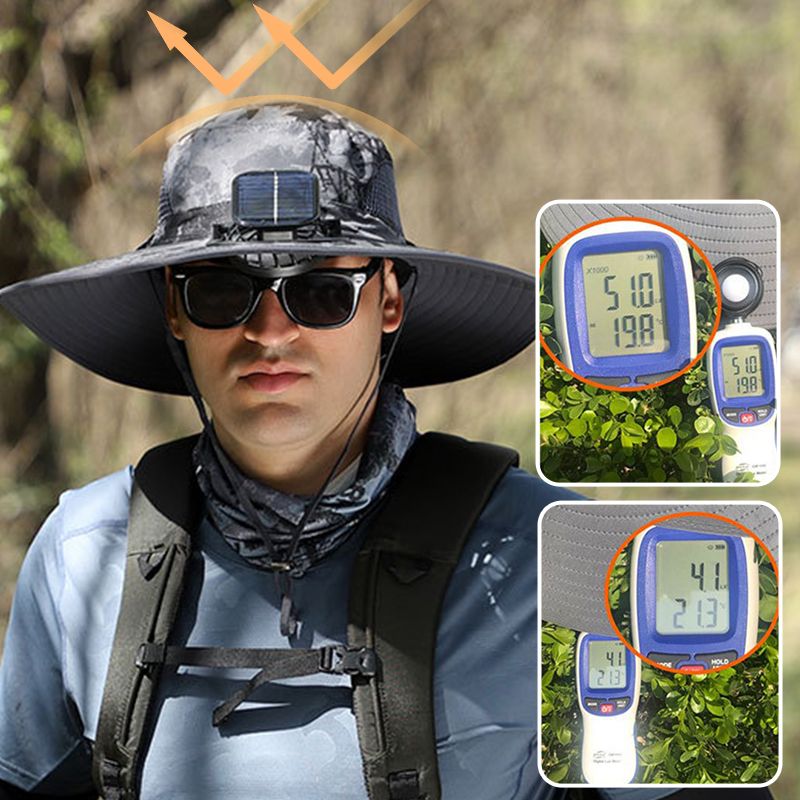 Férfi horgászkalap 2 levehető napelemes ventilátorral