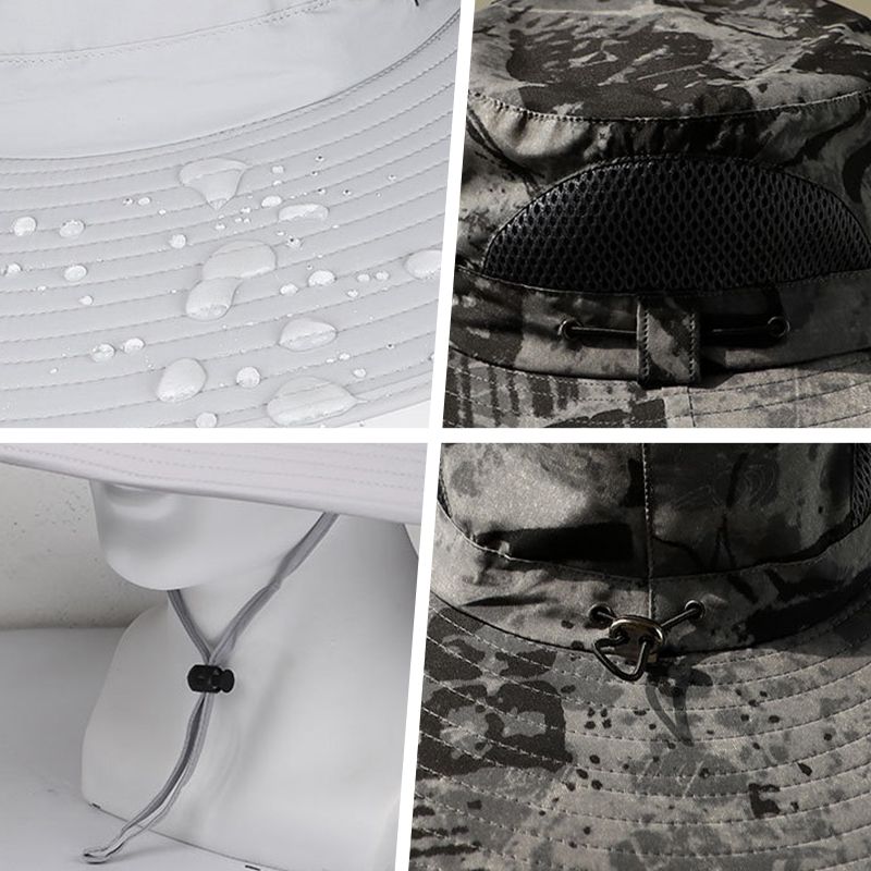Győzd le a hőséget, miközben stílusos maradsz férfi horgászkalapunkkal, amely naptejjel és két kivehető napelemes szellőzőnyílással van felszerelve. Akár horgászol, túrázol, kertészkedsz, vagy csak élvezed a szabadban tartózkodást, ez az innovatív kalap a legjobb társod, amely hűvösen tart és véd a naptól.
