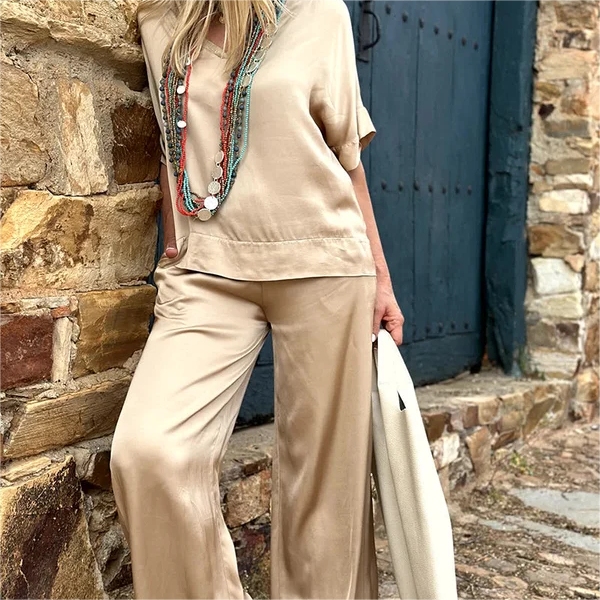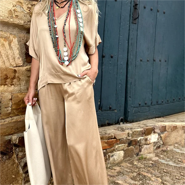 A csomag tartalma: 1* 2 rĂ©szes, szĂ©les lĂĄbĂș, rövid ujjĂș V nyakĂș nadrĂĄg szett