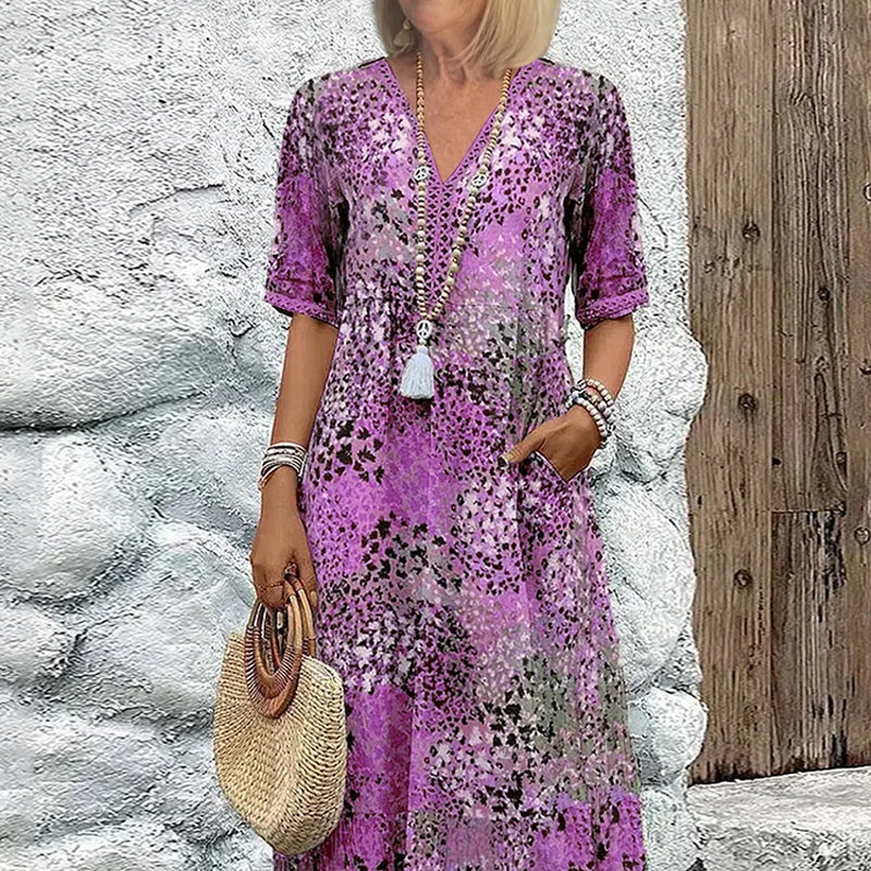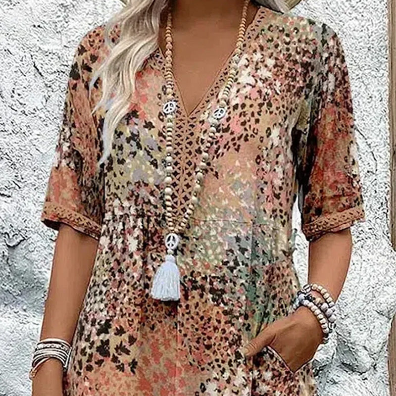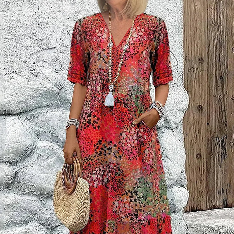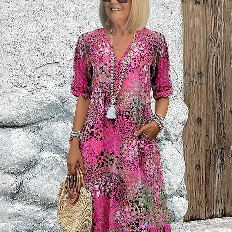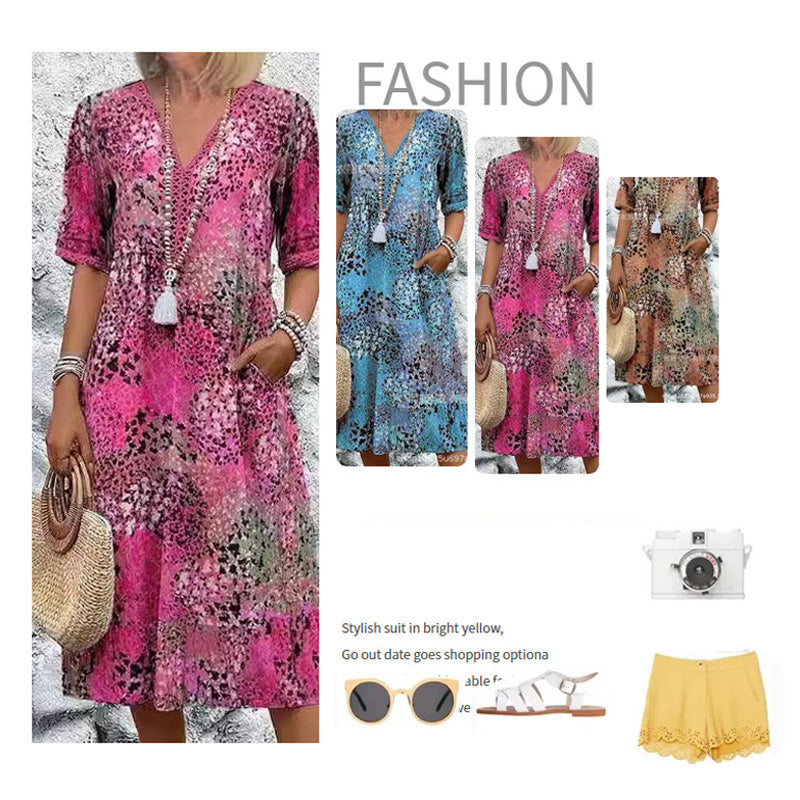 A készlet tartalma: 1*Női ruha világos mintával és V-nyakkal