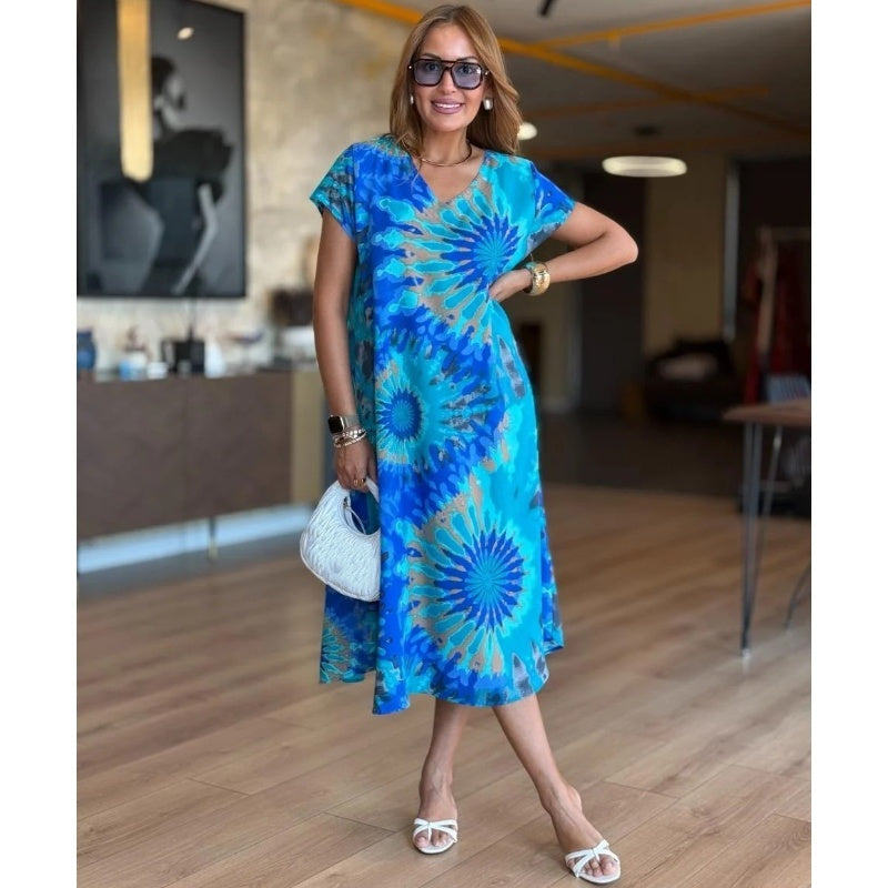 Válogatott minták – Tűnj ki bármilyen színben: A ruha élénk mintái karaktert és mélységet kölcsönöznek az összképnek. Minden színösszeállítás jellegzetes vizuális hatással bír, amely kiegészíti az évszakhoz illő árnyalatokat, biztosítva, hogy a trendi maradj, miközben megőrzöd az egyedi stílusodat.